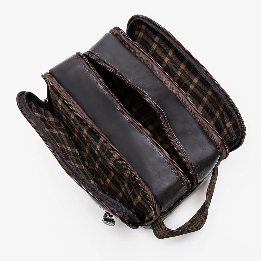 A necessaire em couro ideal para quem não quer deixar nada para trás. Super espaçosa, e muito bem dividida, conta com 3 divisões sendo a principal para acomodar os itens maiores, e as laterais para lhe ajudar na organização dos demais itens, perfeita para viagens. Prática, leve e resistente, com certeza será uma companheira de longa data.