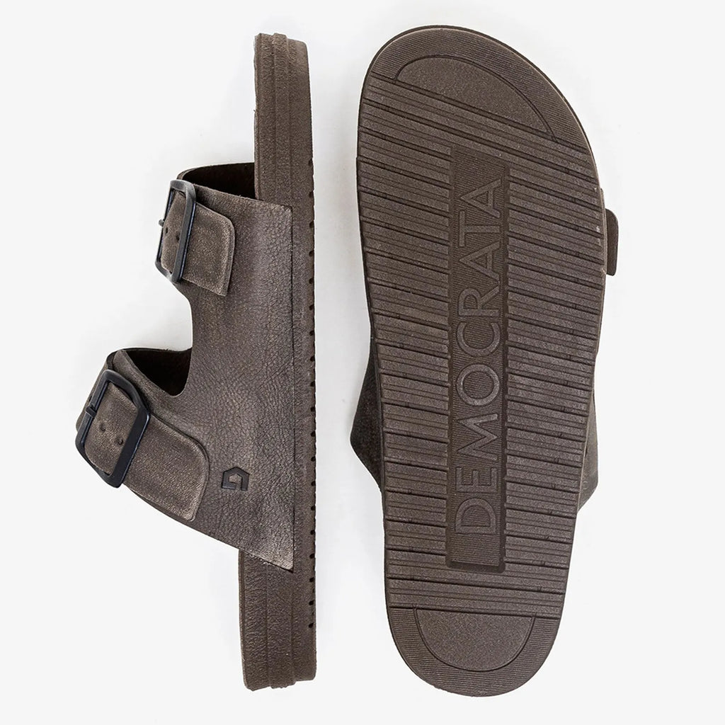 A Sandália Easy Weekend tem seu cabedal e forro produzidos em couro na cor smoke, possui regulagem com fivelas de metal.